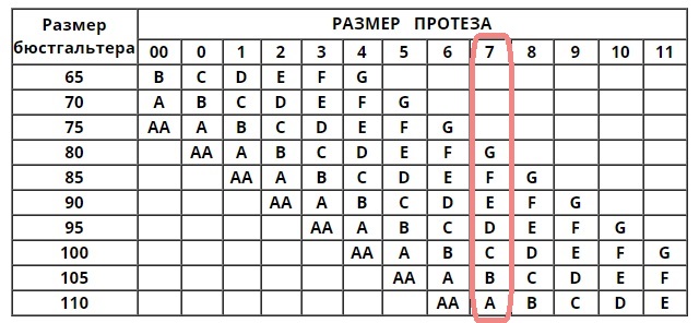 - Размер протеза