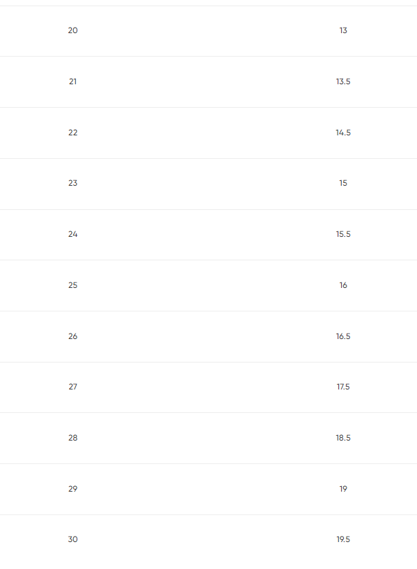Размер Длина стопы, см