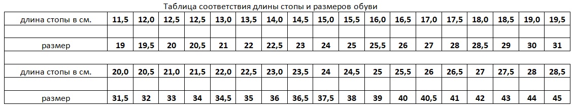 Как подобрать размер обуви: